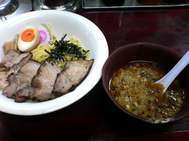 麺の上に、チャーシュー、なると、刻み海苔が入っていますが、モヤシは要らないかなぁ。ツケダレを冷ますだけだし。
