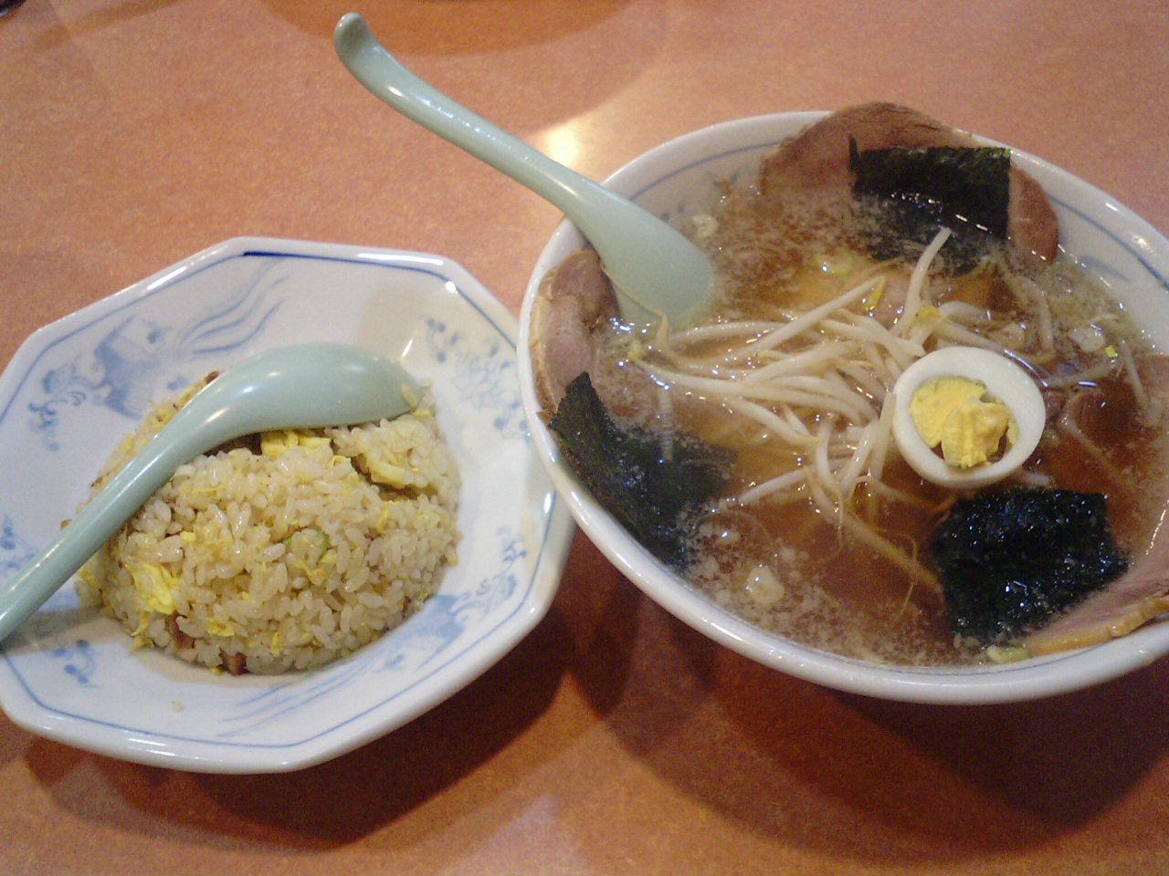半チャーハンや餃子、ミニチャーシュー丼などとのサービスセットがあって、お得な感じがします。