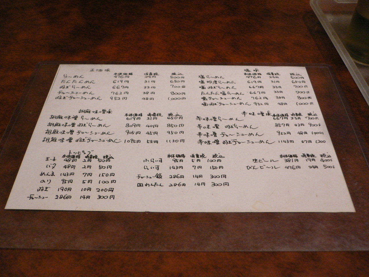 メニューは相当に豊富で醤油系、胡麻味噌系、塩系、辛味噌系とあります。