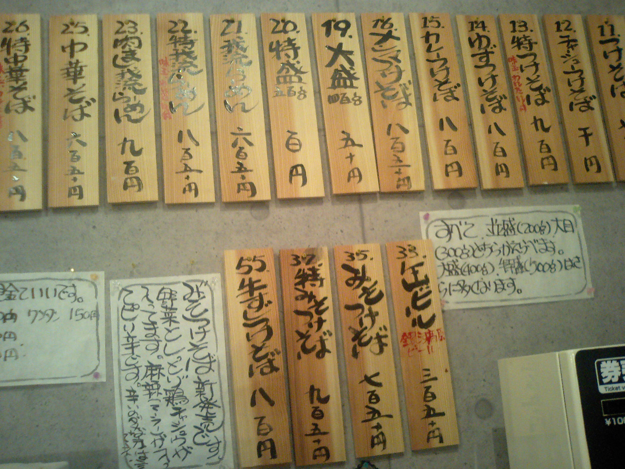 メニューはつけそばとラーメンにトッピング違い。
