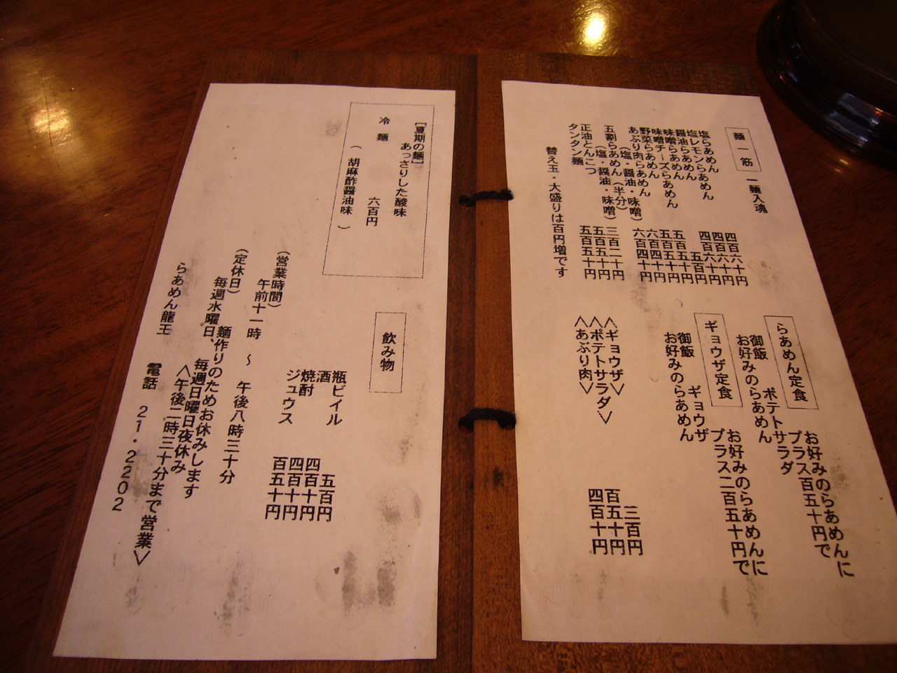 メニューは醤油、塩、味噌にタンタン麺に冷麺など。