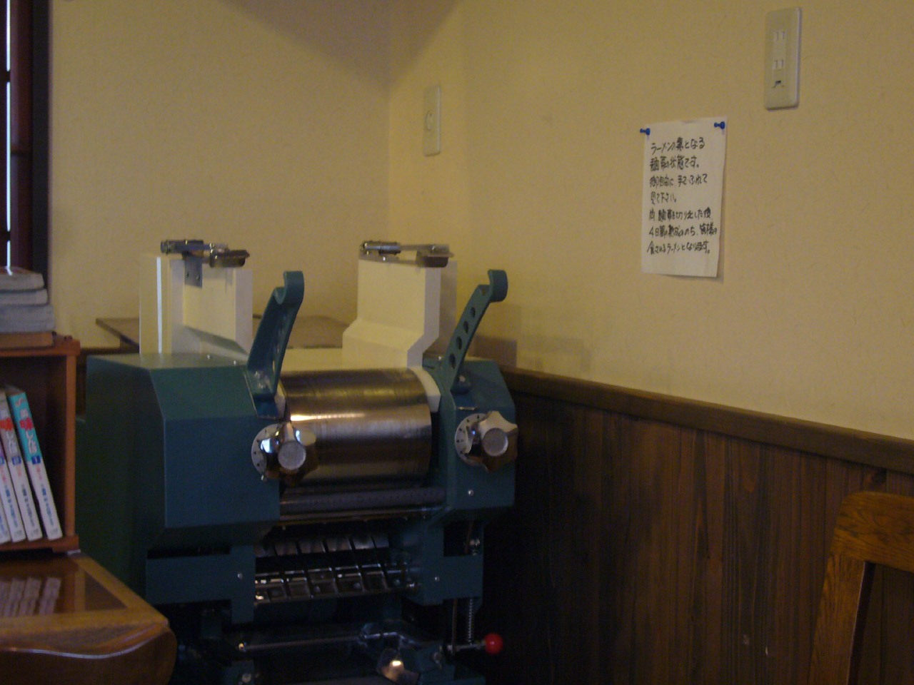 自家製麺のお店で、製麺機が店内に置いてあり、麺帯を置いて展示しているみたい。