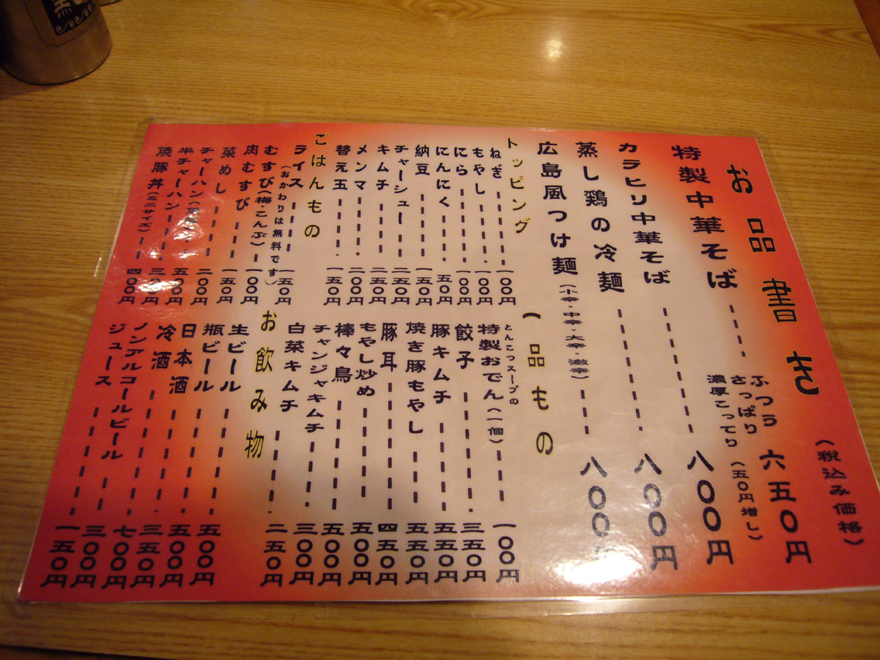 なるほど、今回初めて広島のラーメンを頂いたわけですが、こんな(失礼!!)店でもなかなかのものでしたので、機会を作っていろいろと食べ歩いてみたいと思いました。