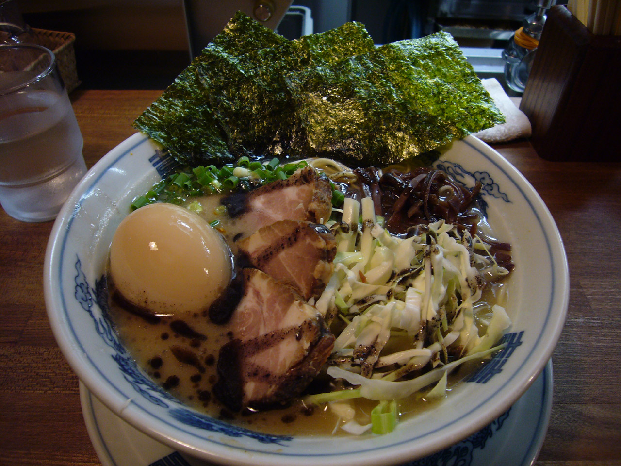 キャベツのせいもあり、また玉子やチャーシューの影響を受け、ややスープがヌルいのが気になりますが、なかなかですね。