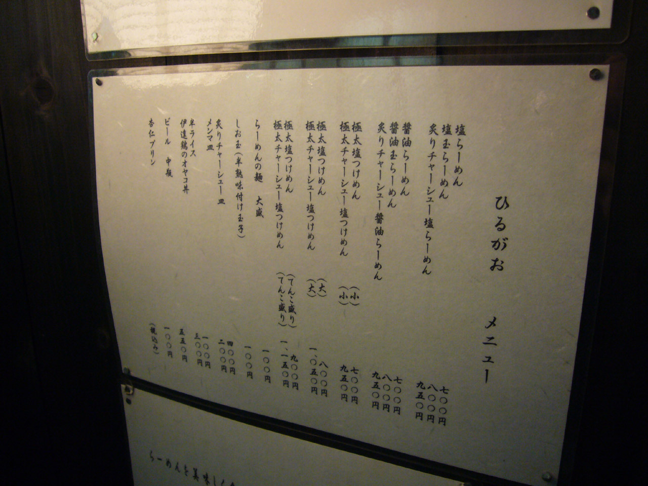 メニューは塩らーめんに醤油らーめんと、塩つけ麺にデザート、トッピングなどなど。