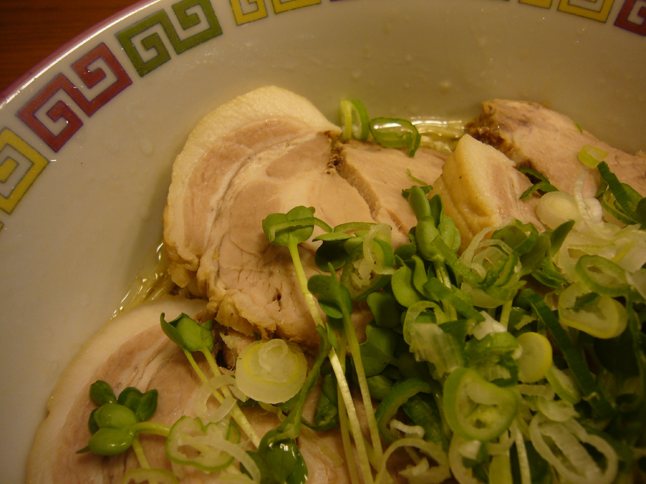 チャーシュー厚いけど、冷えてるので適度にかき回しながら頂きますが、厚さがアダとなりイマイチですね。