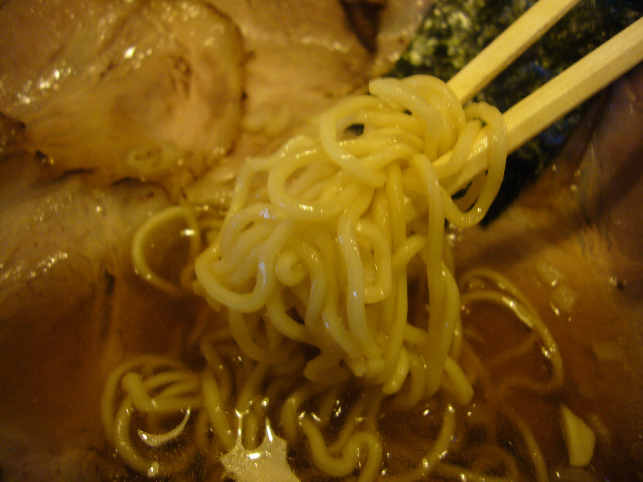 基本的に八王子ラーメンなので、刻みタマネギが浮いた醤油スープのラーメンです。