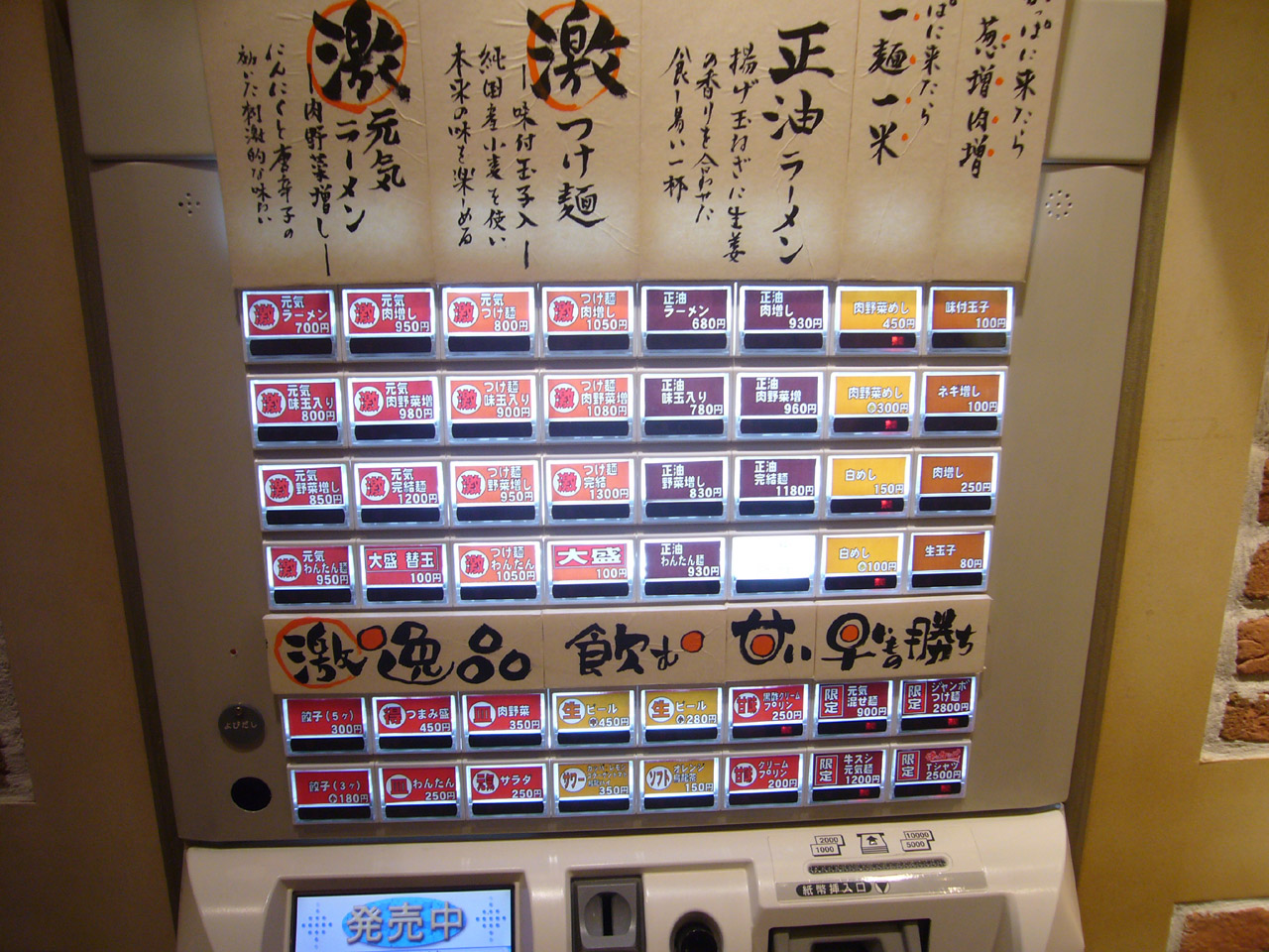 で、自分はちょっと迷って「激元気完結麺」を大盛で注文。