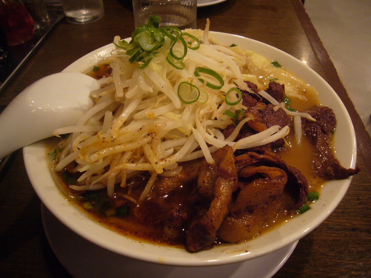 ただ、一般的にはやはりボリュウムが多いらしく、先客のサラリーマンとOLのグループからは「これ大盛?」みたいな声が最初にあがり最後は「完食しましたー」とはしゃいでいましたけど、たぶん、ラーメンフリーク的にはあまり違和感が無いボリュウムかと。