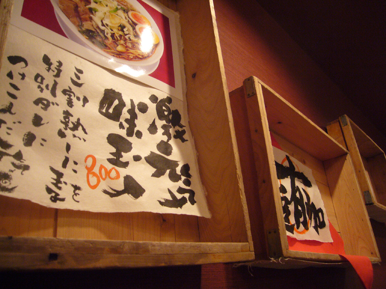 店内は概ね、前の店から引き継いだ感じですが、麺箱を使ったディスプレイが楽しいですねー。