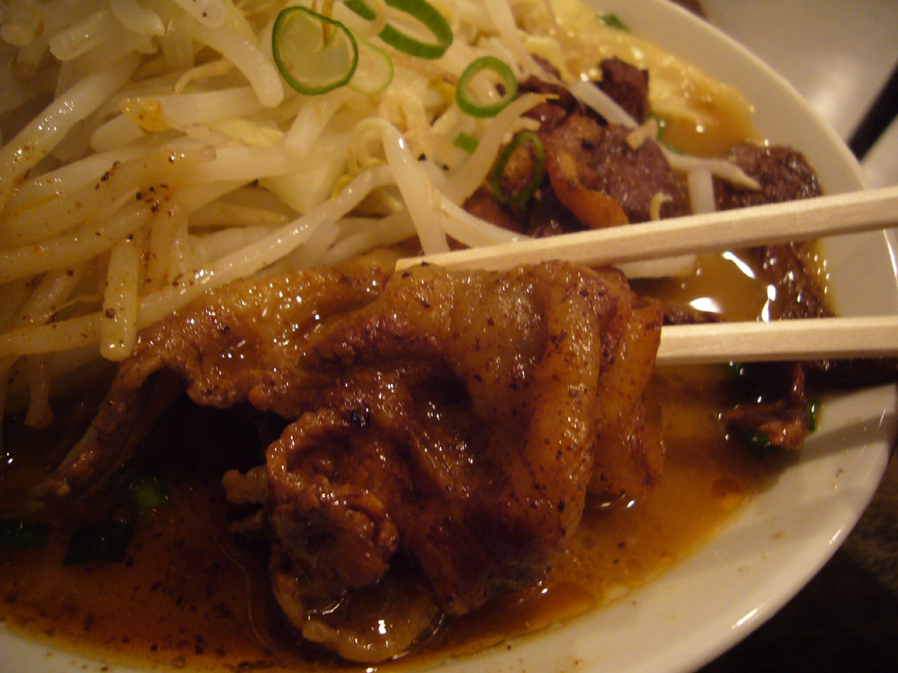 そして、ドカッと入ってきた豚肉。これ、見た目にもインパクトありますねー。
