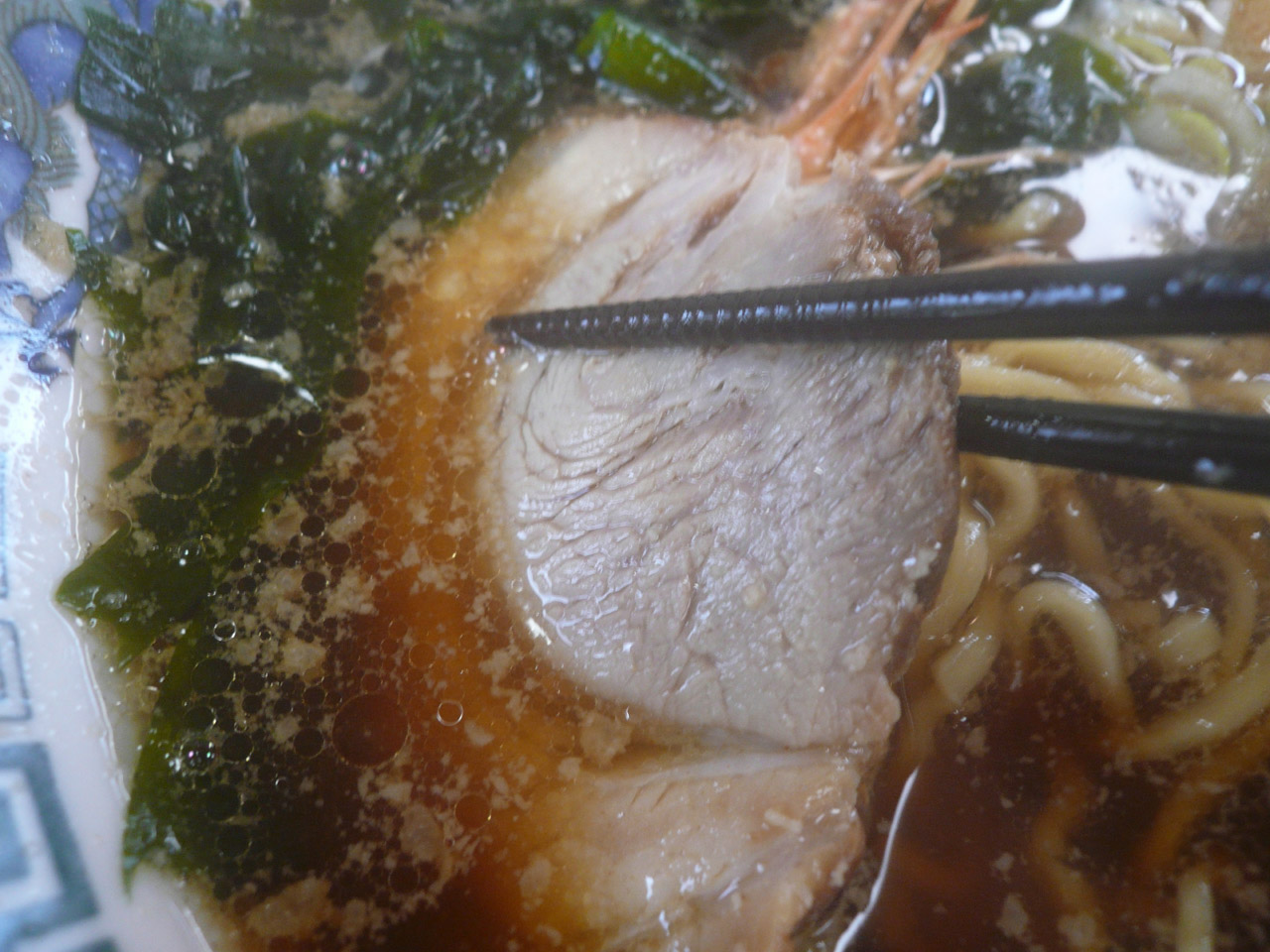 正油ラーメンのスープは見た目にはしょっぱそうですが、さほどでもなく、またパッと見、脂が多く見えてくどそうですが、これまたそうでもなくじんわりとンマイスープに仕上がっています。