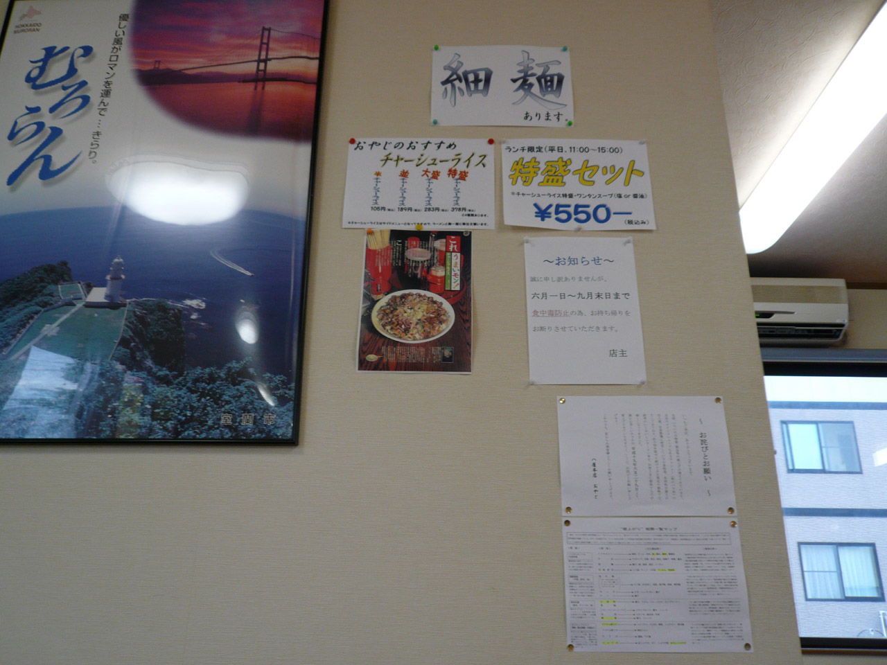 とりあえず店名にもなっているので「室蘭ラーメン」の正油と、チャーシューライスをチョイス。
