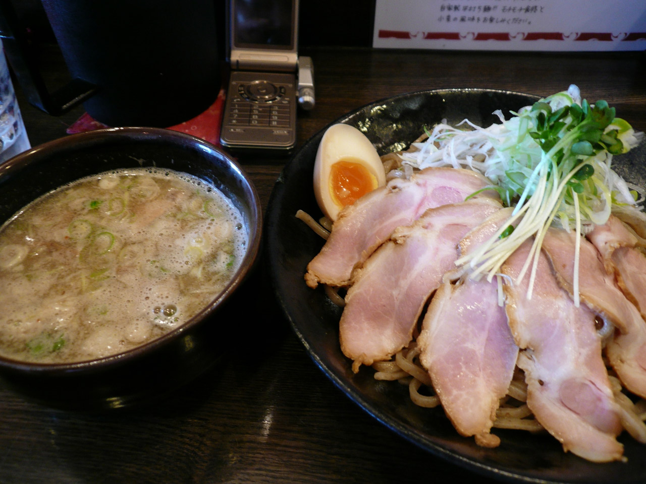 「お口に含むひと口分だけつけ汁につけてください。最後まであつあつのつけ汁が◎です」という文句が壁にあったので、なるべくそれに従って頂きます。