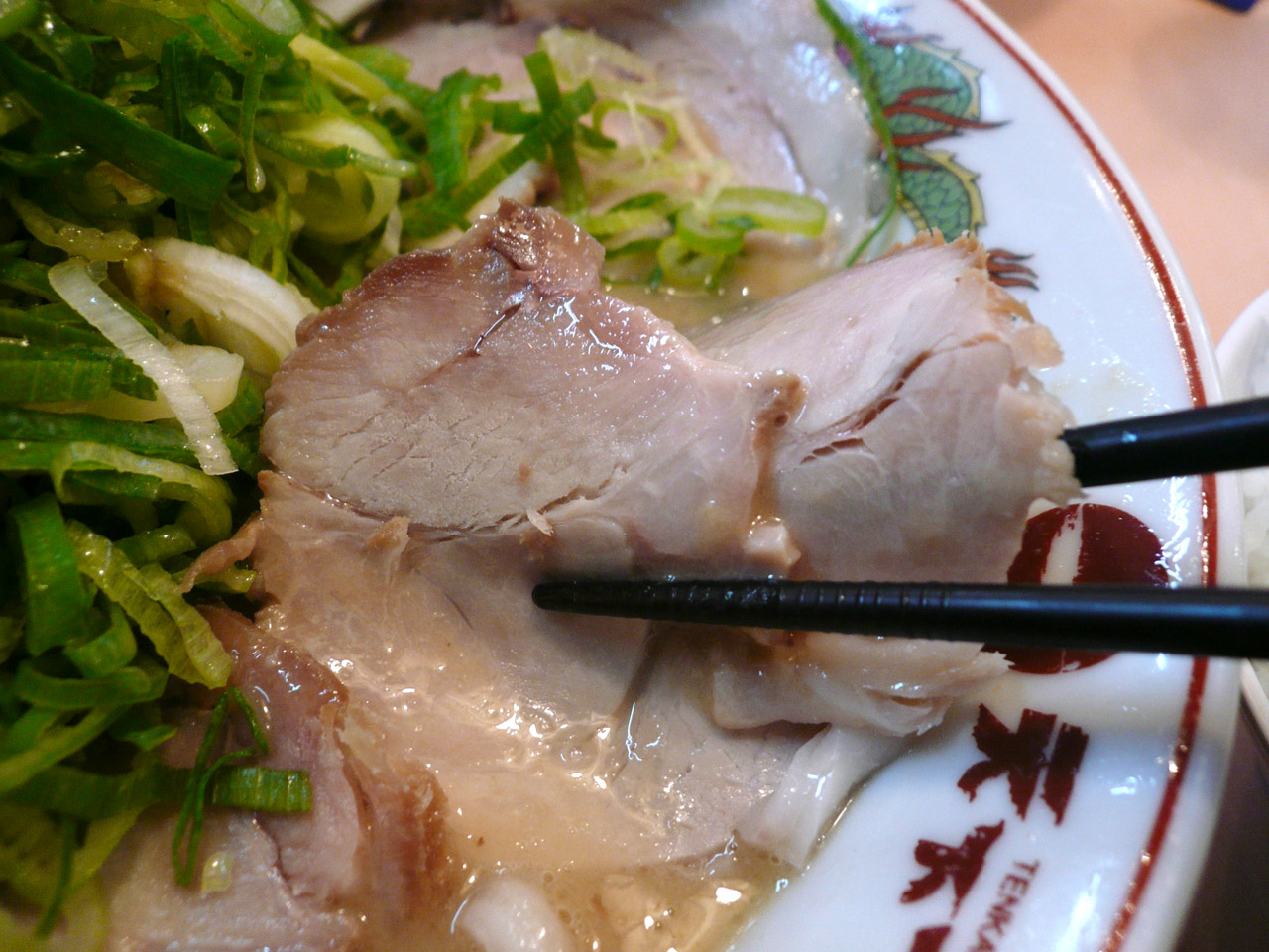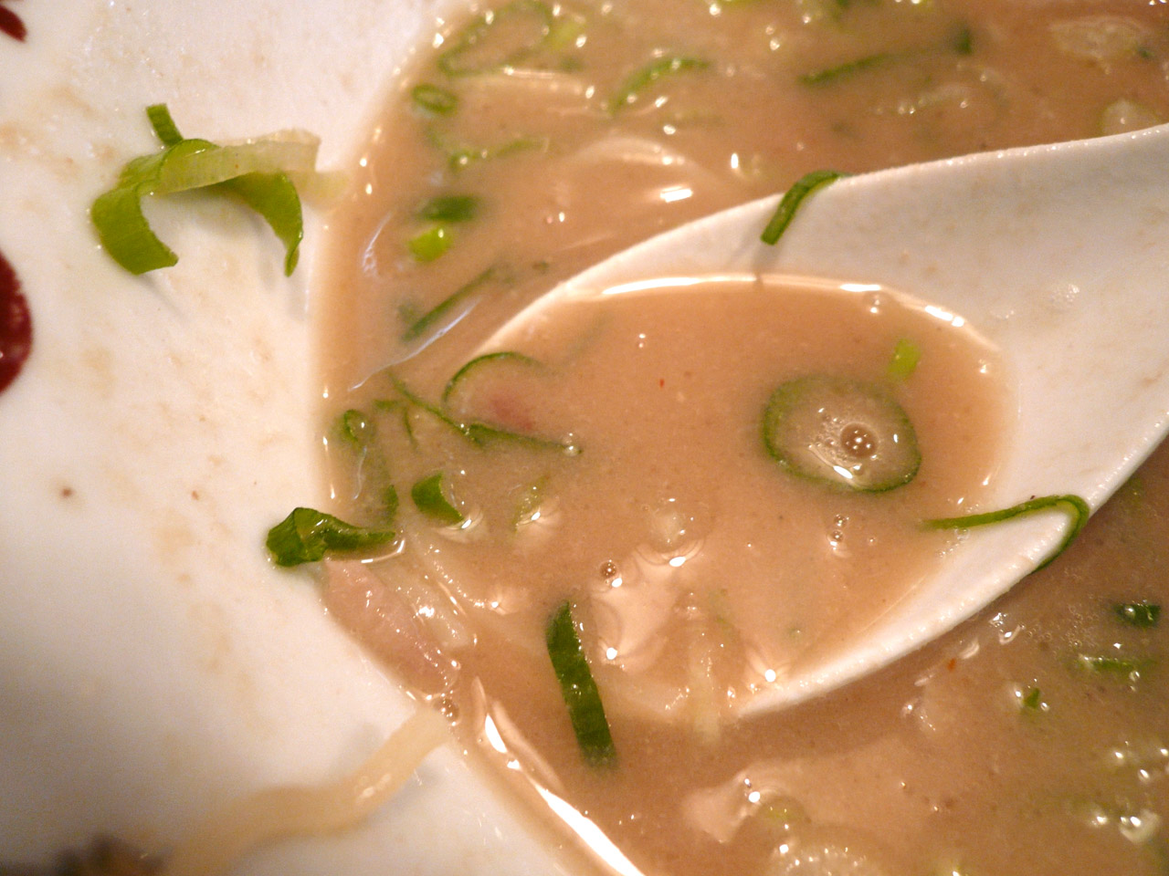 ニンニク味噌を投入して、たっぷりの青ネギと麺を薄くスライスされたチャーシューで包むようにして頬張り、ご飯をかきこんでンマーイ!!!ってな感じですよ。