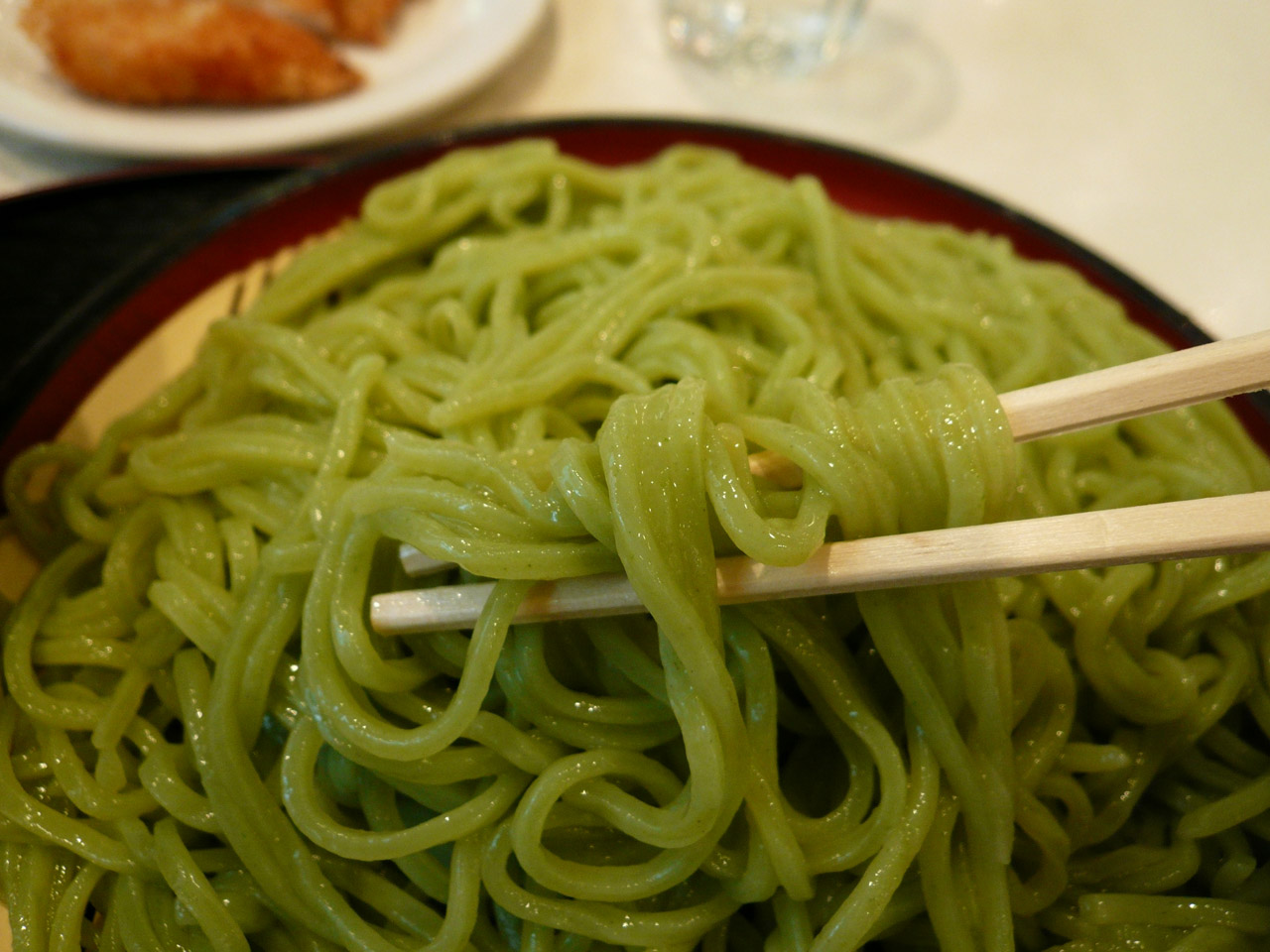 なんと自家製という麺はほうれん草かなにかを練り込んであると思われます。