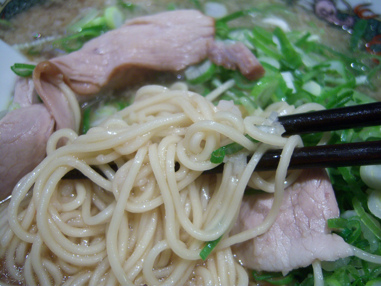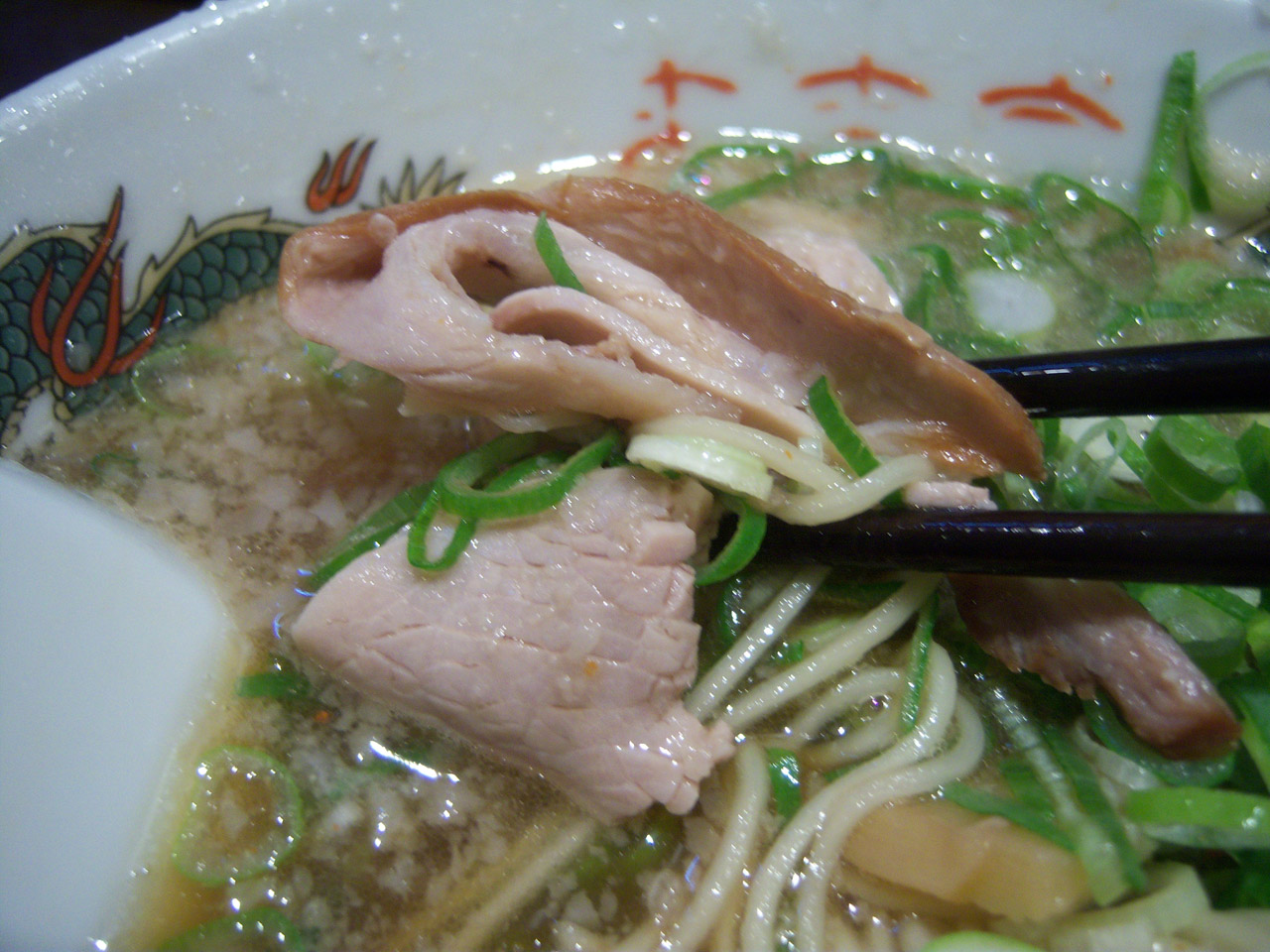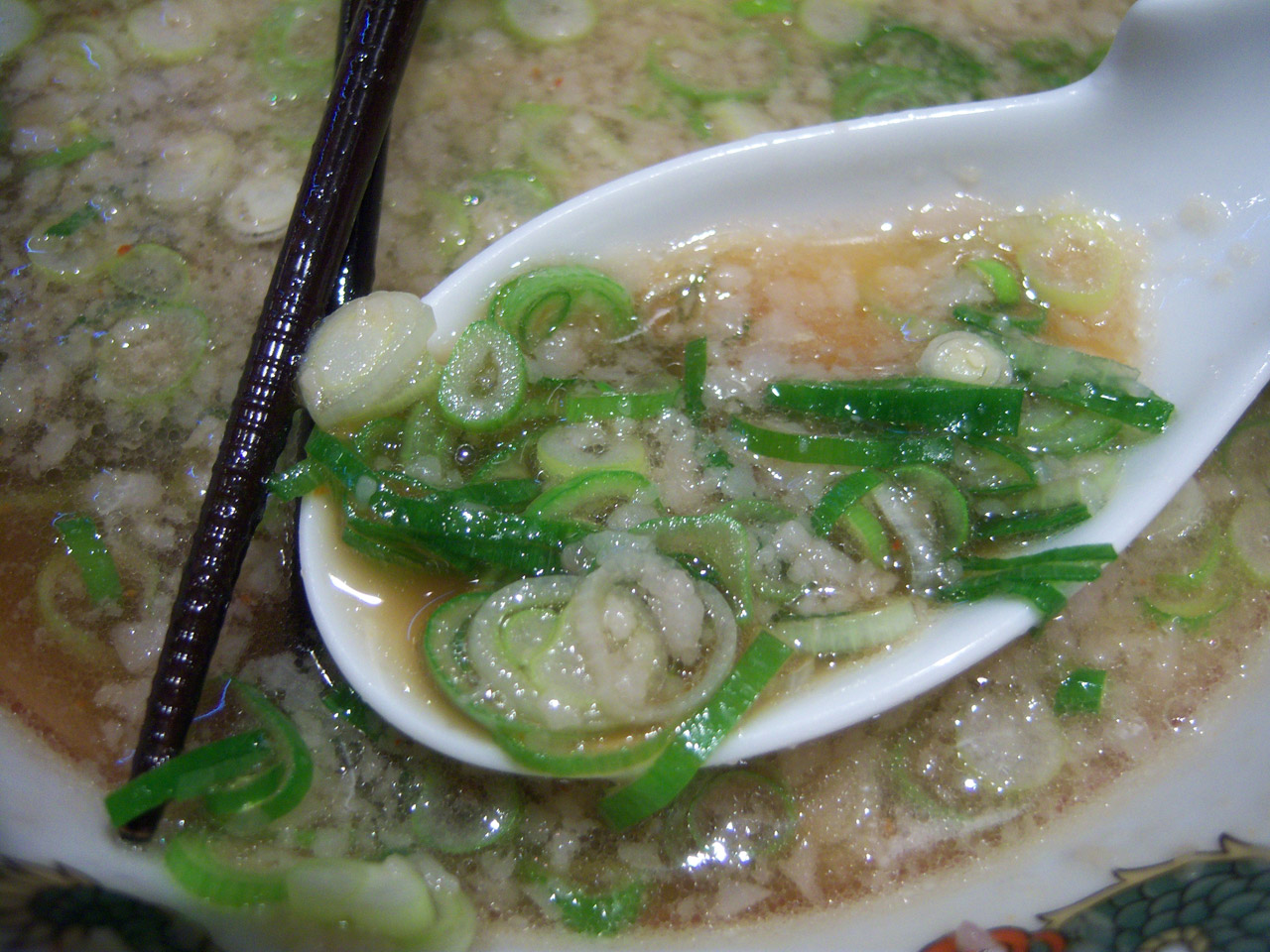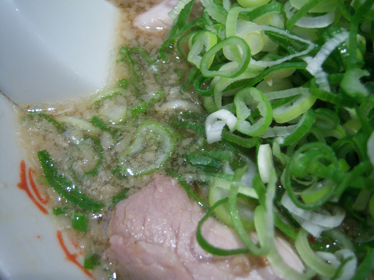 ひとまず、ネギ多めで背脂多めにカスタマイズ。チャーシューは赤身で。