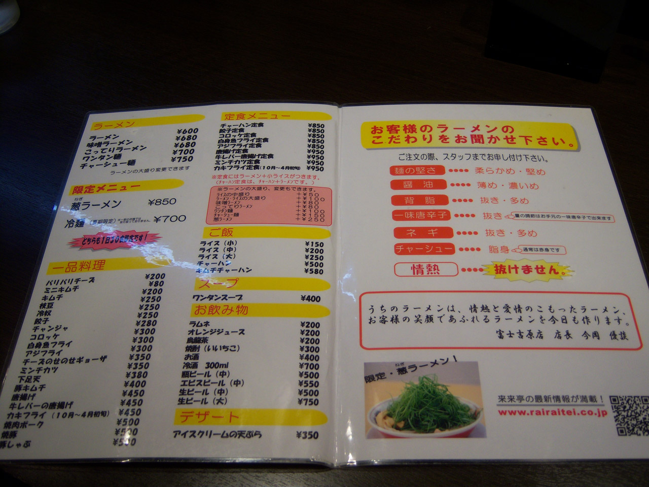 で、その「来来亭」がちょっとだけ関東に近付きました、ってことで、富士市にオープンしました日本最東端の(笑)「来来亭 富士吉原店」へ。