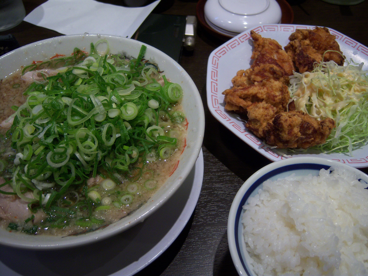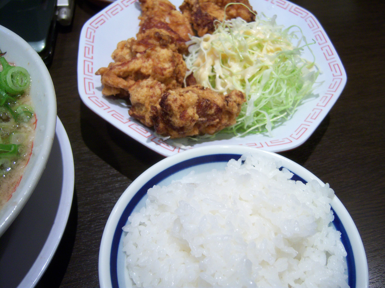 唐揚げ定食をチャーシュー麺化したものを注文。