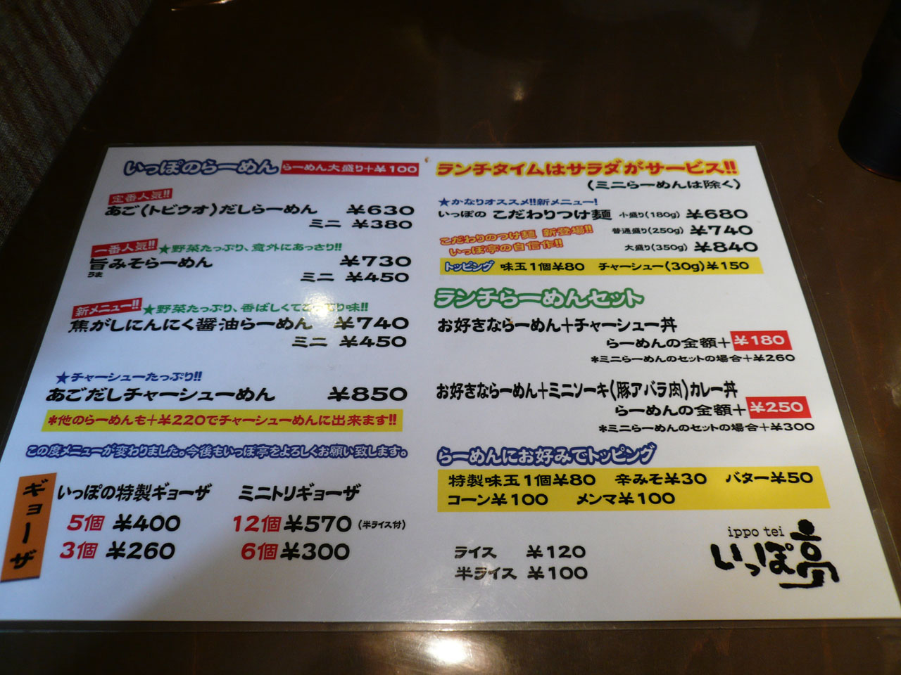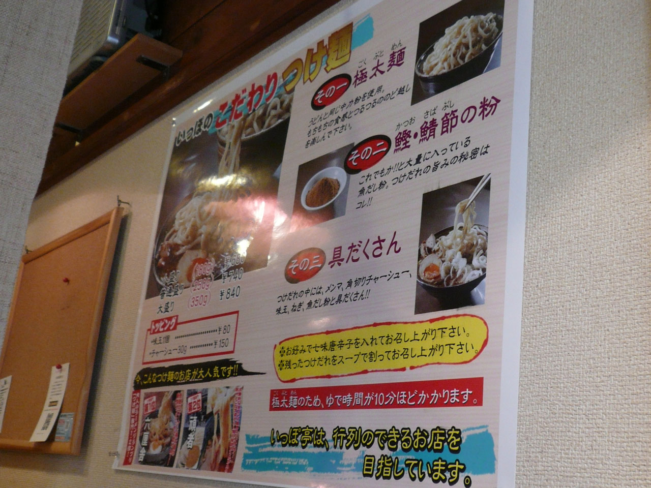 「いっぽ亭は、行列のできるお店を目指しています」とか六厘舎や頑者を意識していそうな店内ポップがなかなか面白いですねー。