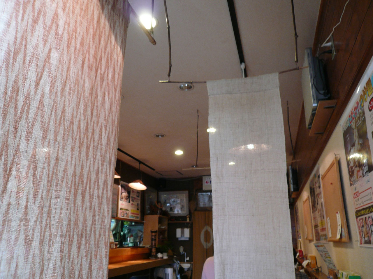 テーブル席は狭いながらも布で仕切られ、ちょっと個室っぽい雰囲気も。ちょっとだけだけどね。