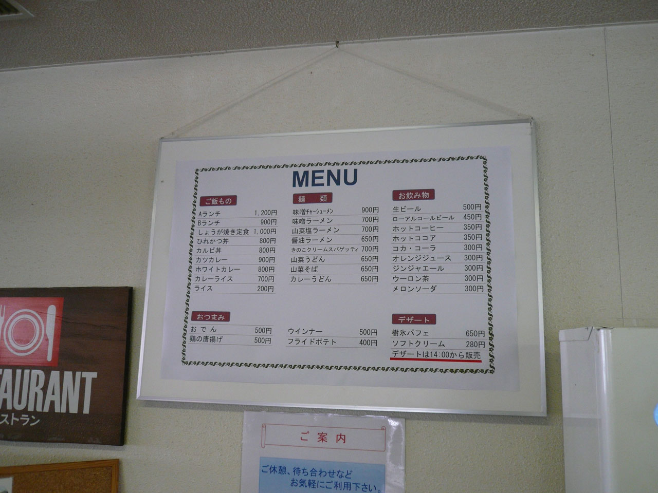 で、ここ「レストラン」としか無いので、コクドから移行した時に「アリエスカ」って名前を外したのかと思ったら、後で調べてみたらコクド時代から「レストラン」って名前のレストランだったみたいです(笑)
