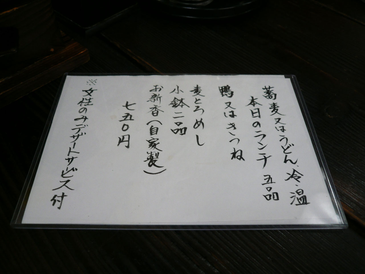 歩道沿いの目立つ場所に、いかにも手打ちしてますって感じで、そばを打つスペースが設置されていて、また「蕎麦居酒屋」と銘打つだけあって夜の営業用に酒とつまみも結構ありそうな雰囲気で、なんとなくのイメージでちょっと高いかもなーと思いつつ、日々、スルーしてたんですが、訪問してみたら意外とランチが安くてお得でした。