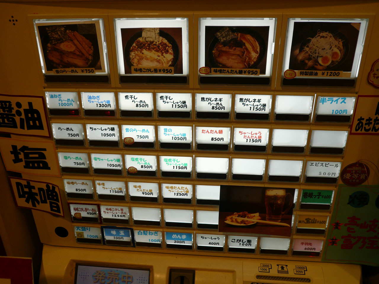 んー、と悩んで、自販機の「味噌焦がしネギ」のボタンに「1位」とあるのをみて「味噌焦がしネギチャーシュー」をチョイス。