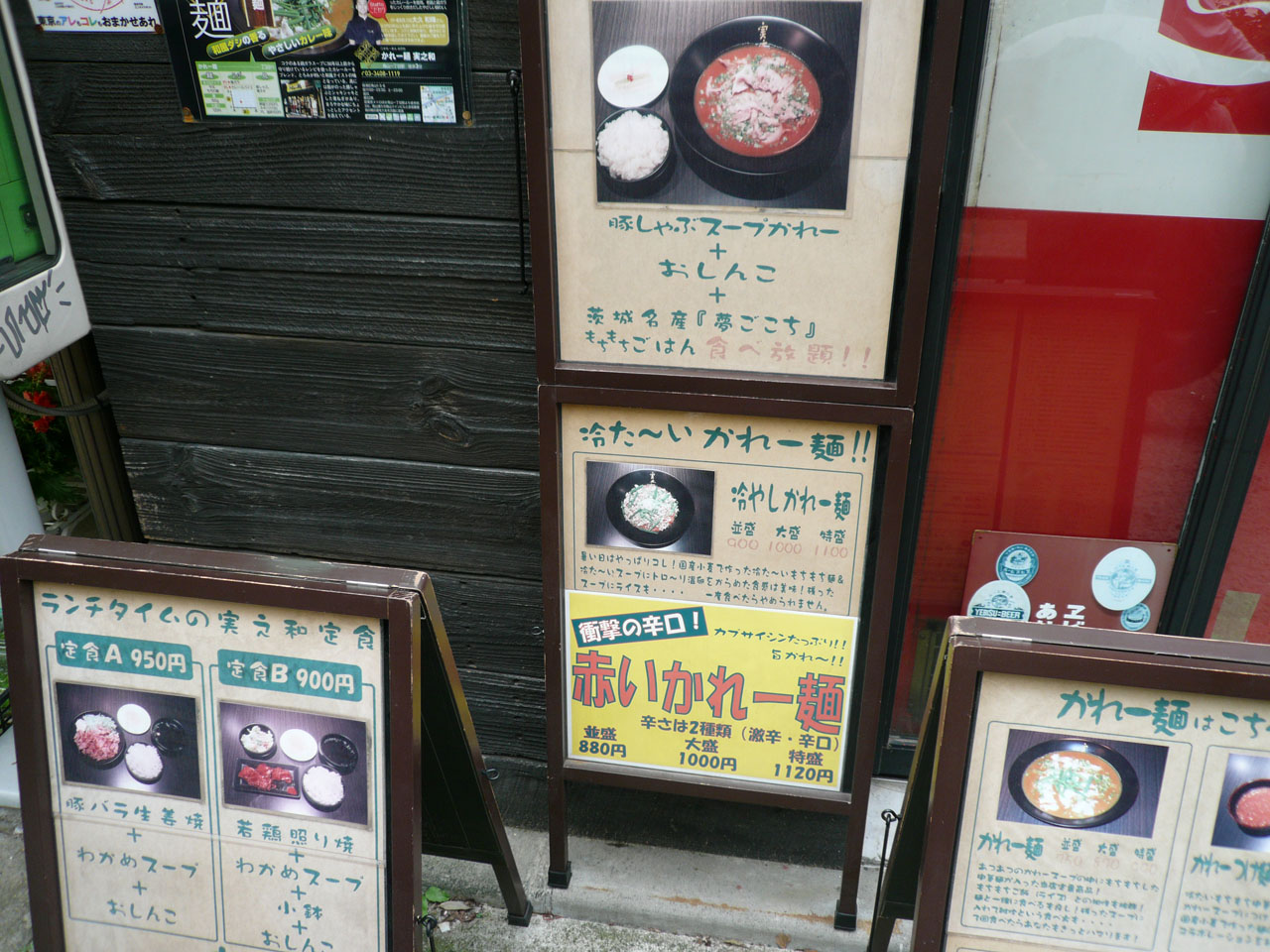 メニューは、かれー麺、かれーつけ麺を中心にランチタイムは定食メニューやライスのサービスがありつつ、赤いかれー麺やら冷たいかれー麺などの限定系のメニューも。