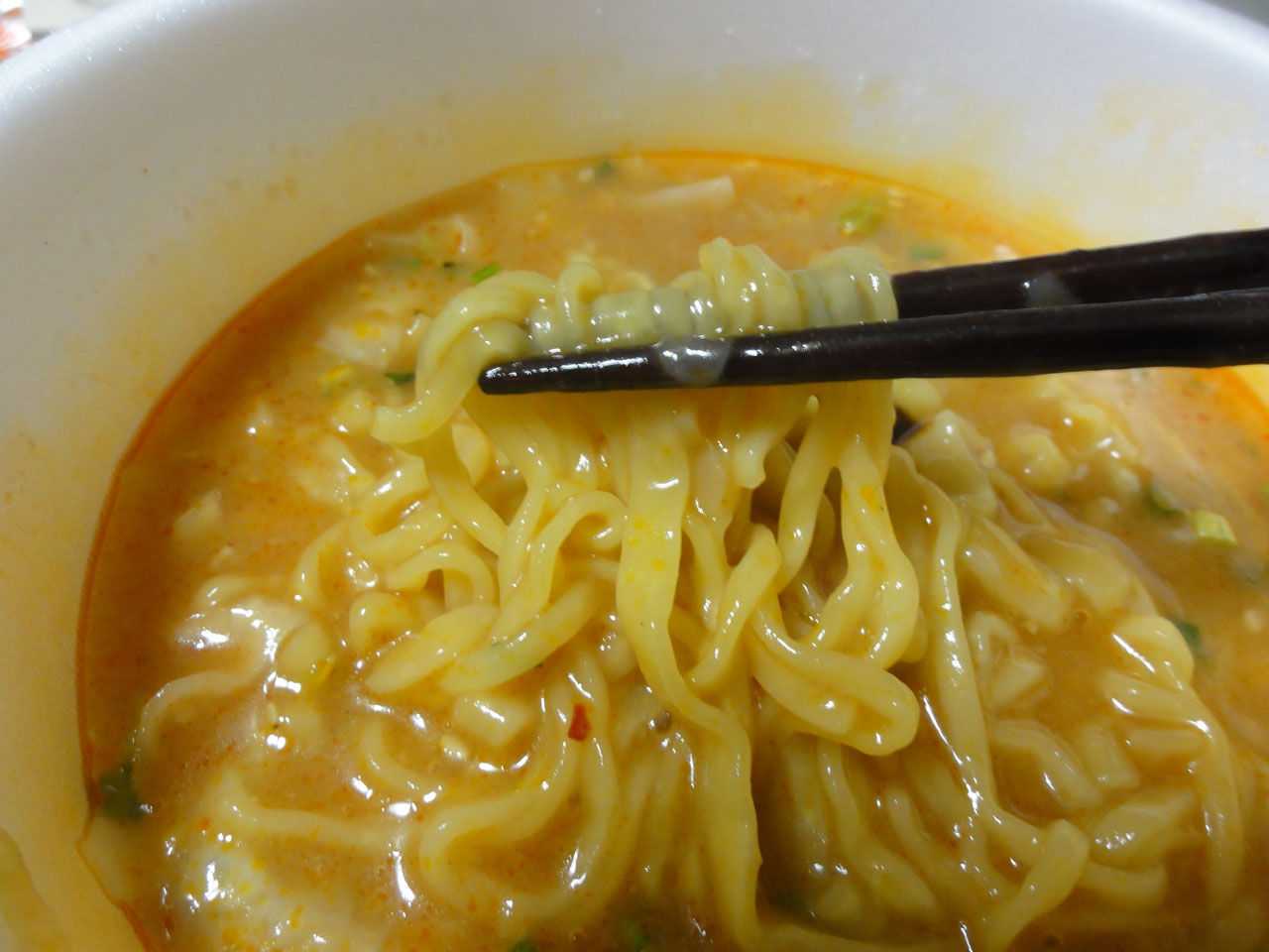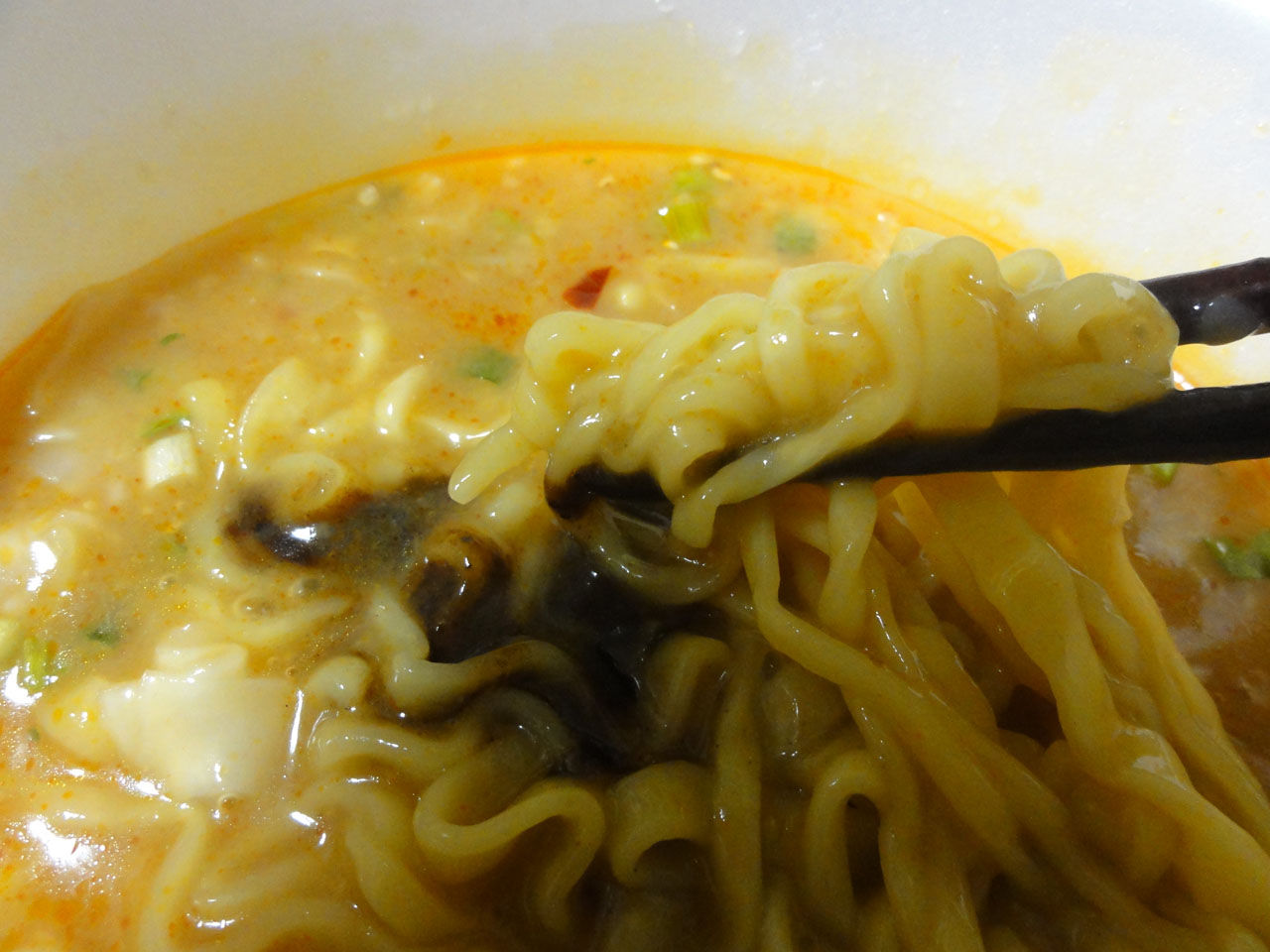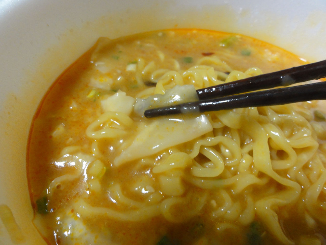 カップ版の方は豚が濃厚に出ているからドロっとしてるというよりは、片栗粉的なものの影響でトロみがついたというようなイメージになっています。